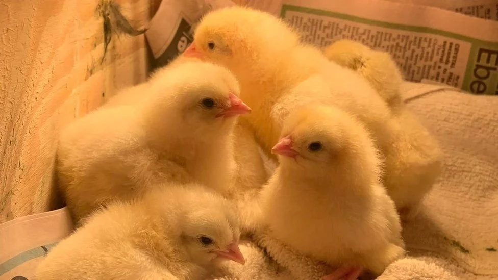The BBC report does mention that the chicks - who were supposed to die from being gassed with all the others - were destined to become animal feed and that the killing of male chicks, seen as unwanted and unprofitable by-products of the egg industry, is standard practice.