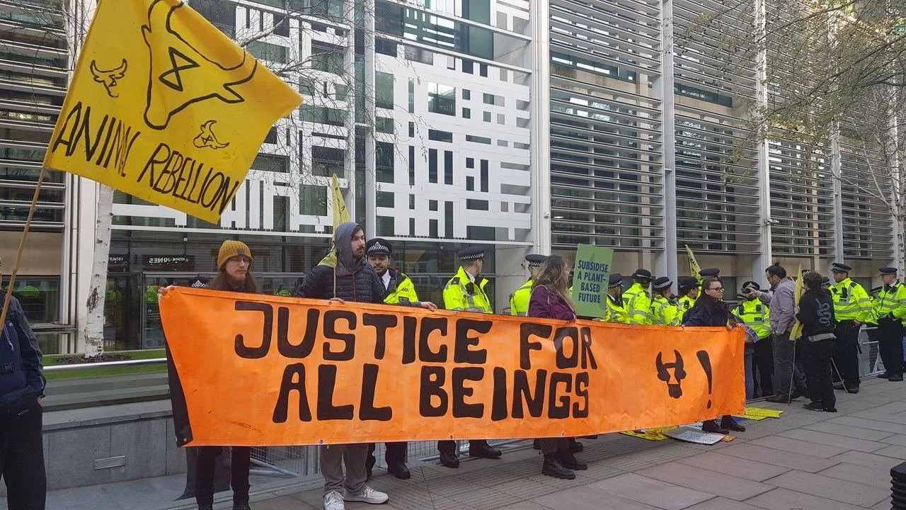 “We are targeting DEFRA today because they have a moral responsibility to support farmers in a just transition to a sustainable plant-based food system for the livelihoods of farmers and the lives of us all.”